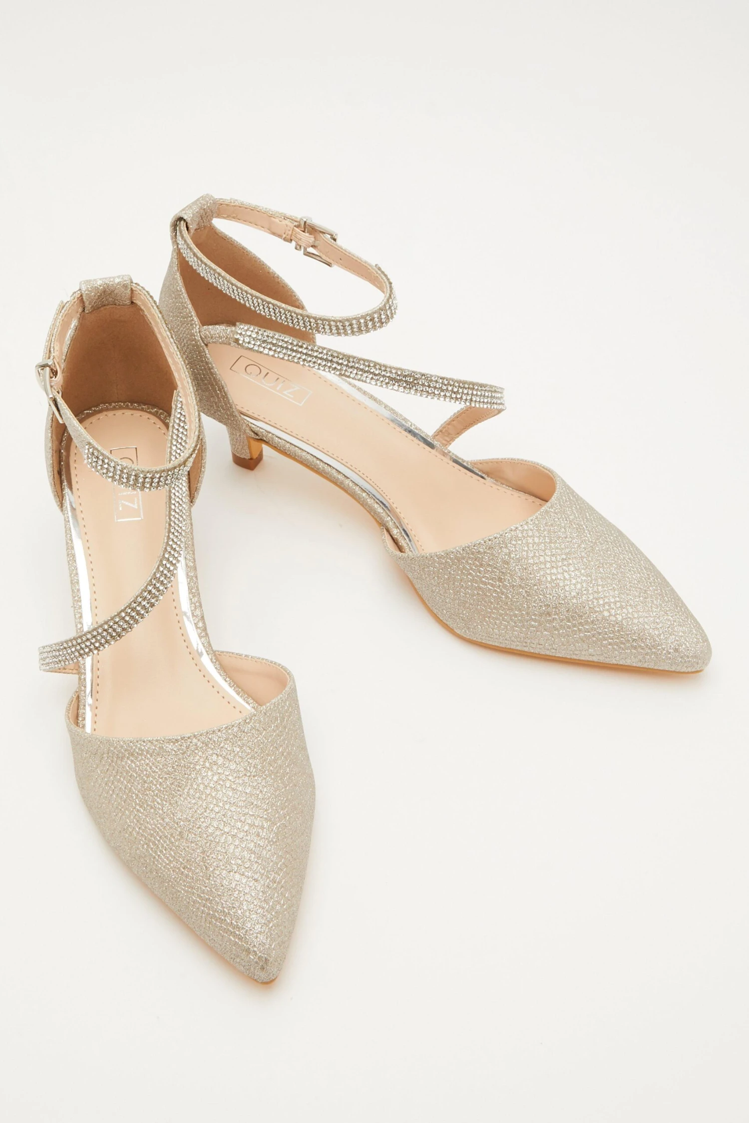 • Asymmetric diamante straps