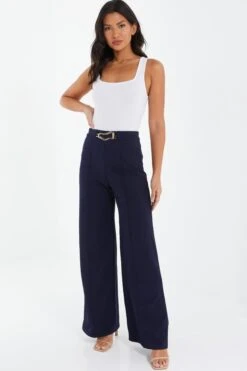 Navy Buckle Palazzo Trousers
